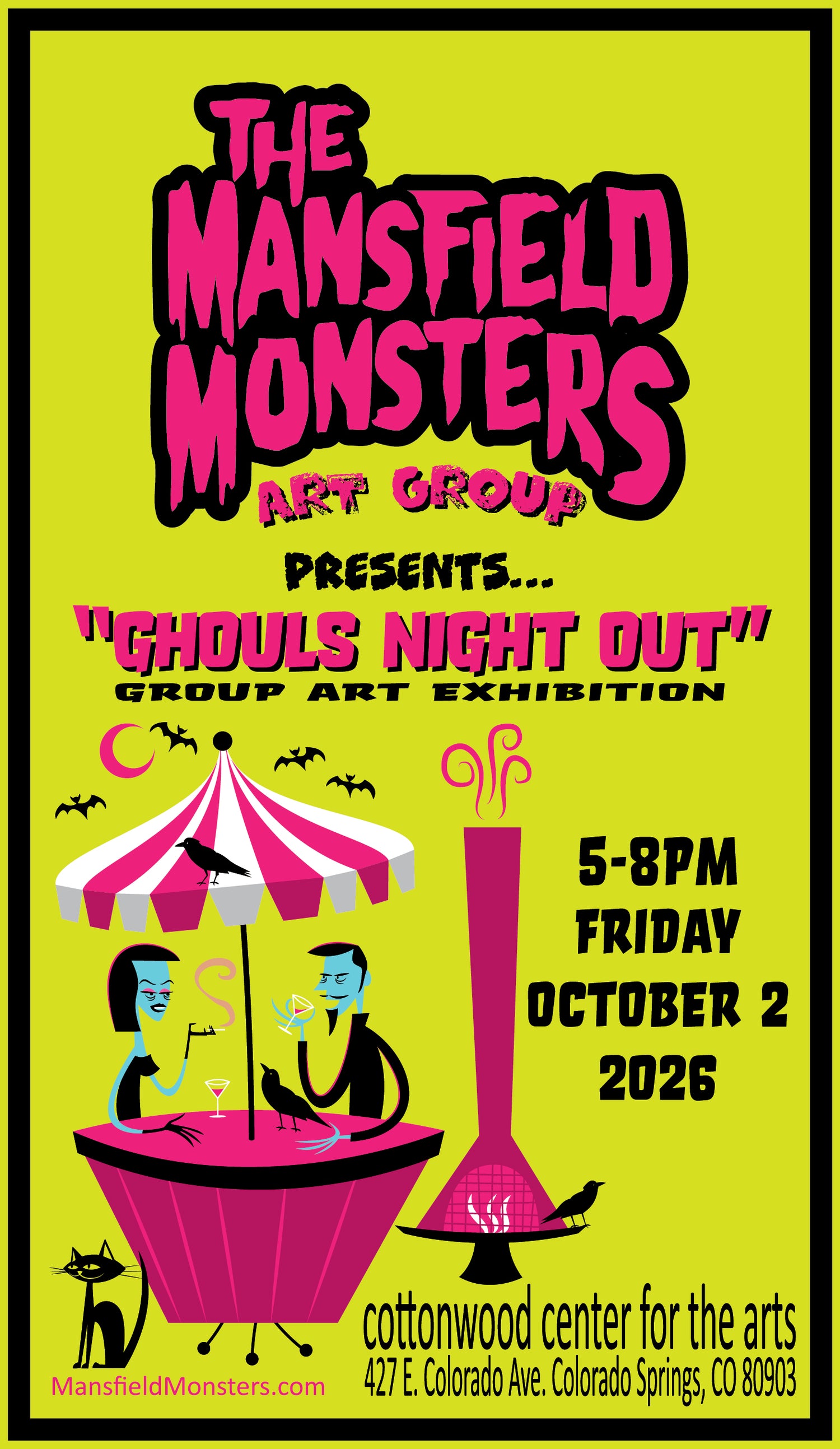 The Mansfield Monsters Art Group Presents "GHOULS NIGHT OUT" Art Exhibition October 2, 2026 Cottonwood Center For The Arts 427 E. Colorado Ave. Colorado Springs CO 80903