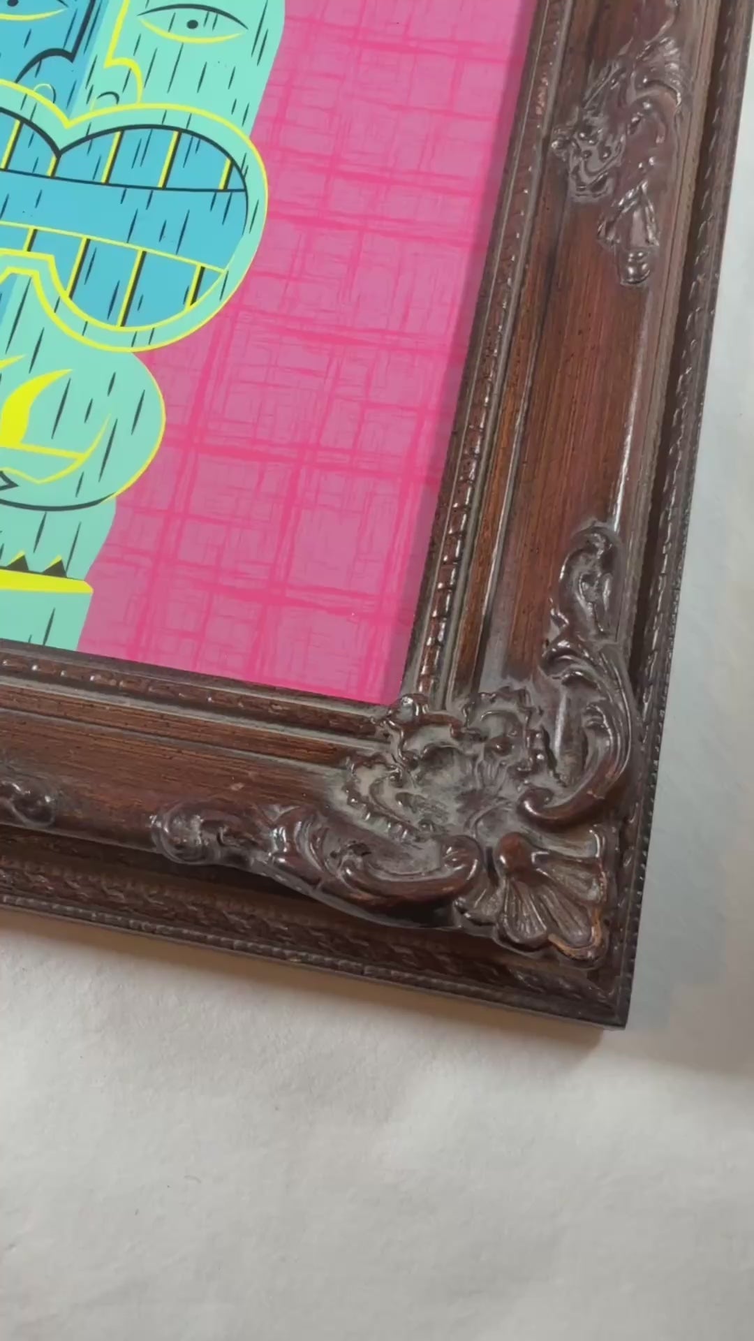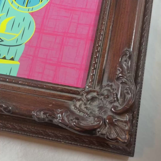 "Blue Tiki With Flaming Pot" 8"x10" Giclee Fine Art Print FRAMED
