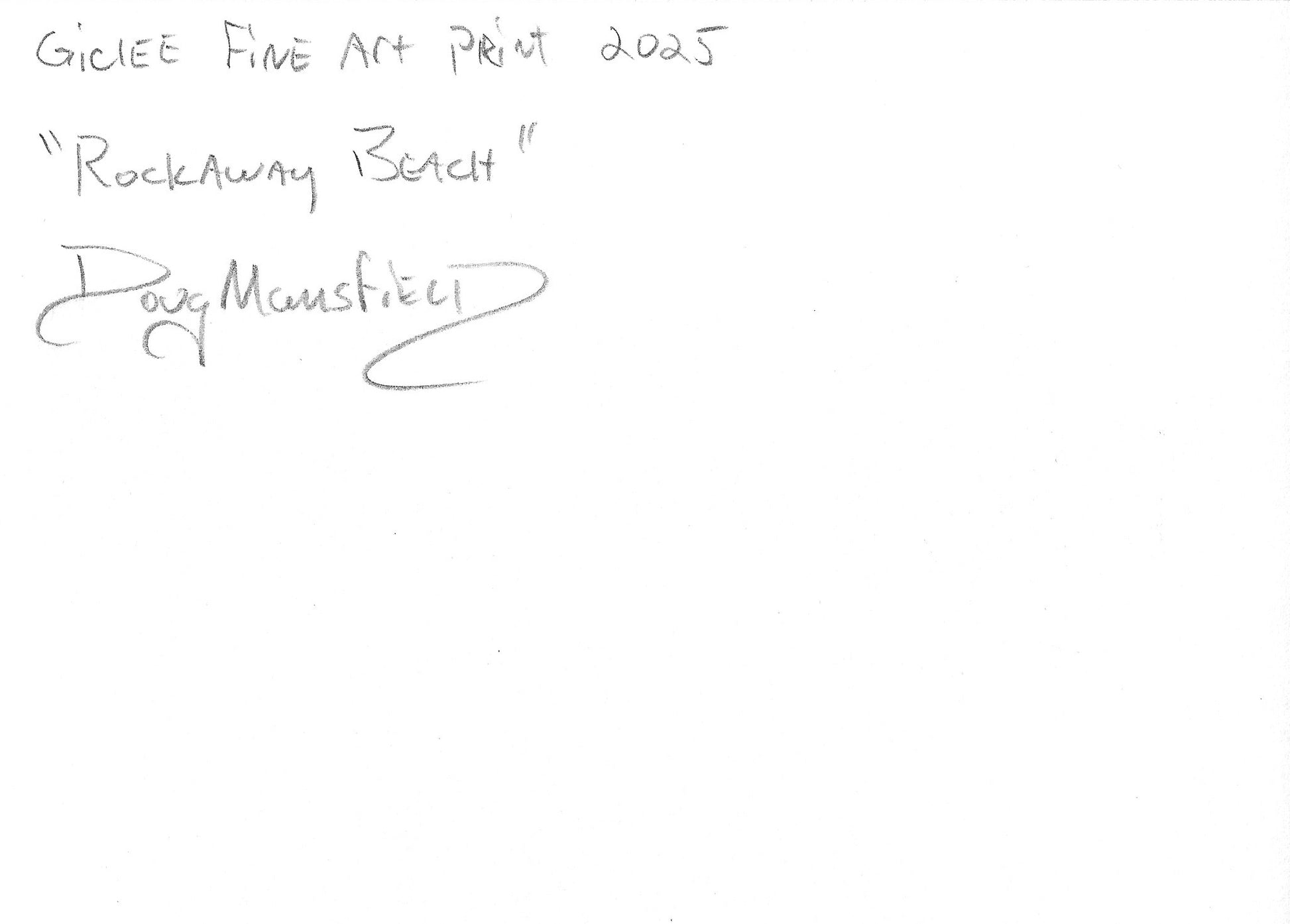 - Title hand written and signed by Doug Mansfield on back of print