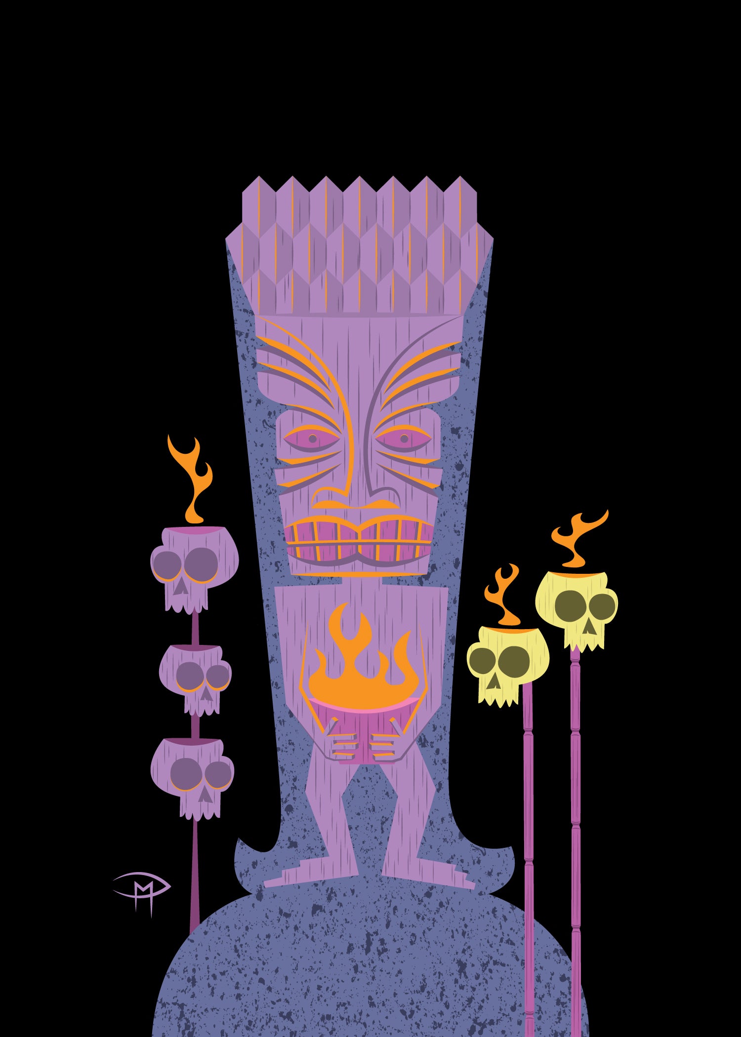 "Tiki With Flaming Pot" 5"x7" Giclee Fine Art Print
